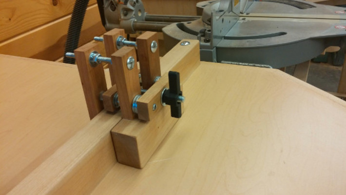 Finally, I also built a fence clamp out of scrap cherry and maple. The clamp is elegant, and compliments the miter bench.