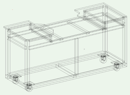 The frame consists of from 16-gauge steel 2$\ft$ $\times$ 4$\ft$ and 4$\ft$ $\times$ 4$\ft$ tube steel. I used a MIG welder to join the frame. To support the casters I installed 1/4$\in$ steel plates at the bottom corners of the frame.