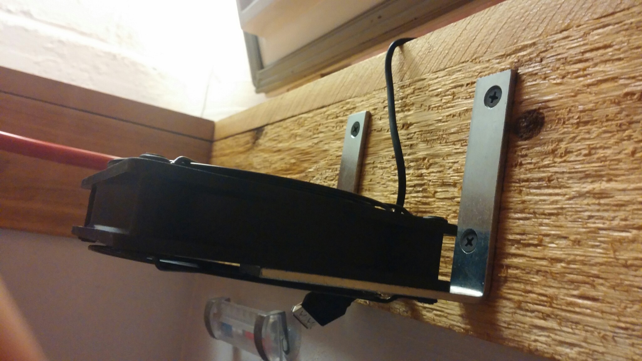 I used to angle brackets to mount the fan to the collar. Currently the USB wire for the fan just rests on top of the lip, but does not seem to disrupt the seal between the lid and the lip.
