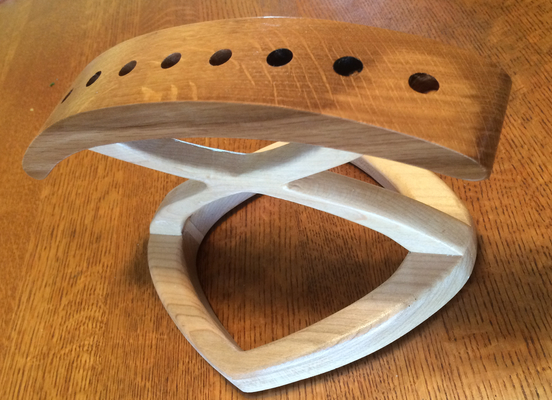 This menorah grasps an ordered natural character. The compliment of curves between the base and the legs of the menorah suggest the menorah grew out of its volition, while the symmetry of the base and legs tame the foundation. The expansive negative space promoted by the legs demonstrates the strength of the natural architecture. The arch gives purpose to the growth of the legs. The waving edge-on grains in the arch characterize the menorah as an elegant individual, prepared for eight days of light.